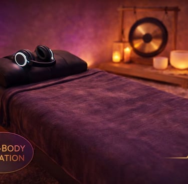 This 60-minute immersive sound bath combines live sound healing with full-body vibroacoustic therapy. Low-frequency vibration travels through the bed while sound moves through the headphones, guiding your nervous system into a deeply regulated, restorative state